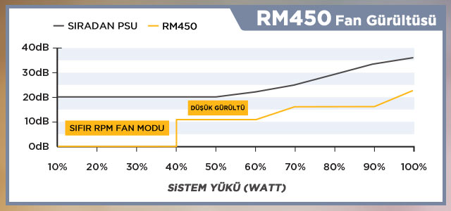 En önemli güç kaynağı değerlendirme enstitüsü 80Plus testlerinden %90 ve üzeri verimliliği ile Gold sertifikaya hak kazanan RM450, bu sayede şebekeden gereksiz güç çekmez. Elektrik ziyanı olmadığı için faturalarınız azalır. Daha az güç kaybı, daha az ısınmasını ve sessiz çalışmasını sağlar.