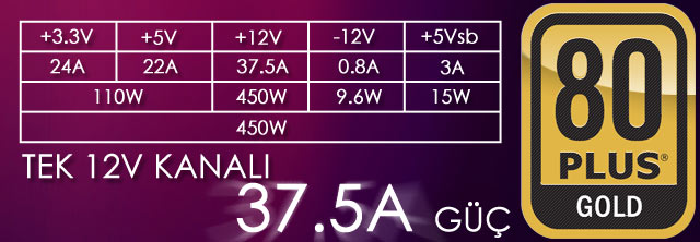Bir bilgisayarda en çok güç aktarımı yapılan kanal 12v kanalıdır. Bu nedenle PSU’nuzun bu kanaldan verebileceği amper miktarı çok önemlidir. Çok çekirdekli ve hızaşırtılmış bir işlemci, yeni nesil güçlü bir grafik kartı ve diğer tüm donanımların %90’ı için hayati önem teşkil eder. En iyiyi arayanlar, en iyi 12v kapasitesine sahip olan güç kaynağını almalıdır. Bu kriter için en iyi seçeneğiniz de Corsair RM450’dir.