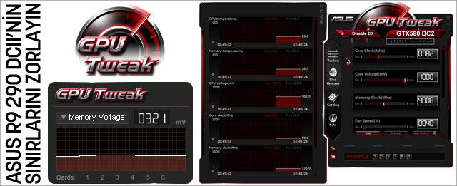 En üstün hızaşırtma yardımcınız ile tanışın. GPU Tweak yazılımı ile kartınız üzerinde tam bir hakimiyet sağlayabilirsiniz. Gerçek zamanlı yapısı ile sadece saat hızlarına değil; BIOS güncellemesine, voltajlara, sıcaklık ve fan bilgilerine de el atabilirsiniz. Dilerseniz oyun içi videolarınızı 720p çözünürlükte kaydedebilir, profiller oluşturarak kişiselleştirme yapabilir ve masaüstü widgetleri yaratabilirsiniz.