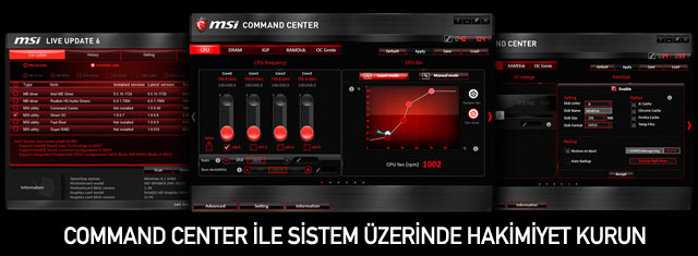 MSI Command Center, anakartınızın sınırlarını zorlamanıza olanak tanıyan çok güçlü bir yazılımdır. Algısal, dokunmatik destekli arayüzü ile kullanıcıların sistem kararlılığını arttırmak için ihtiyaç duydukları ayarlara kolayca ulaşmalarını, soğutma özelliklerini ve hızaşırtma performansını kontrol etmelerini sağlar.
