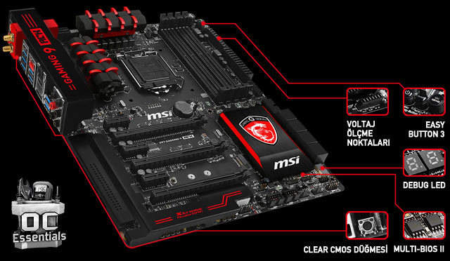 OC Essentials, anakartınızdan en iyi performansı alabilmeniz için dahil edilmiş ufak bir araç setidir. Bu özellikler kararlılığı arttırırken sorun çözmede yardımcı olarak sisteminizi basit bir yönetimle her zaman kontrol altında tutmanızı sağlar. Böylece oyundan başka hiçbir şeye dikkat etmek zorunda kalmaz ve performansınızı en yüksek seviyede tutacak araçlara sahip olursunuz.