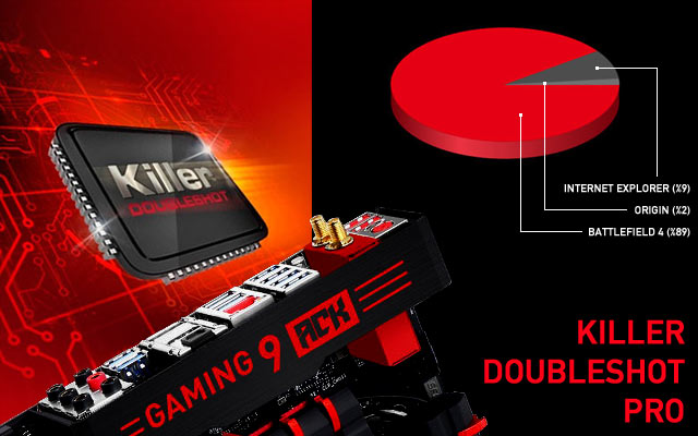 Killer DoubleShot Pro, Killer Ethernet ve WiFi adaptörlerini bir arada kullanır. ve hem düşük gecikme, hem de üstün online veri hızı sağlar. Advanced Stream Detect ise online oyunlar için gecikmeye duyarlı uygulama ve verileri sınıflandırıp öncelik tanır.