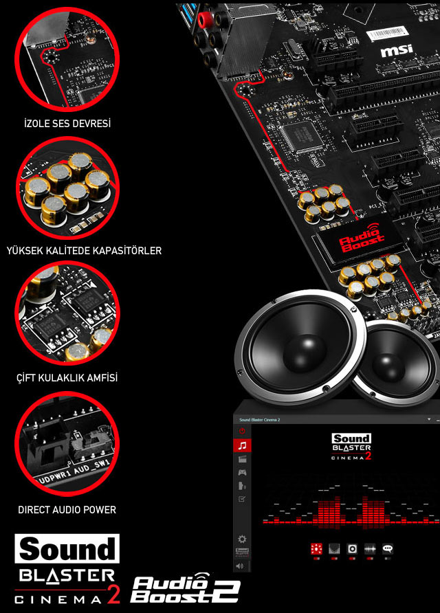 Kulak zarınızı paramparça edecek seslere hazır olun! Creative Sound Blaster Cinema 2 ile güçlendirilen MSI Audio Boost 2 ile kristal berraklığında 8 kanal HD ses deneyimi yaşayacaksınız.