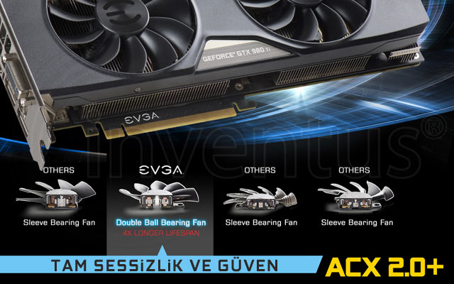 EVGA ACX 2.0+ fanları çift bilyalıdır. Böylece sleeve