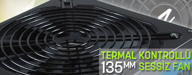 Sahip olduğu 135 mm’lik fan çok sessiz çalışır. Güç kaynağının üzerindeki yük arttıkça ortaya çıkan sıcaklığa göre kendini otomatik olarak ayarlar ve gerekli hızda döner. Bu sayede her türlü kullanım ortamına göre sessiz ve etkili soğutma sağlar.