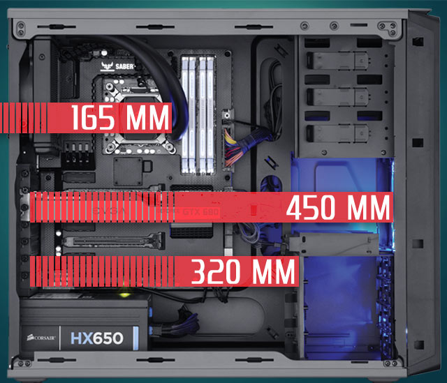 Graphite 230T, ferah kullanım alanını ayağınıza getiriyor. Kolay montaj için sağladığı hacimle sıkıcı donanım montajı işini eğlenceli anlara dönüştürür. En uzun grafik kartlarına bile izin veren geniş VGA alanlarının yanı sıra kule tipi işlemci soğutucularına özel 165 mm’lik boşluk da işlemcinizin soğutma kapasitesini artırmanıza yardımcı olur.