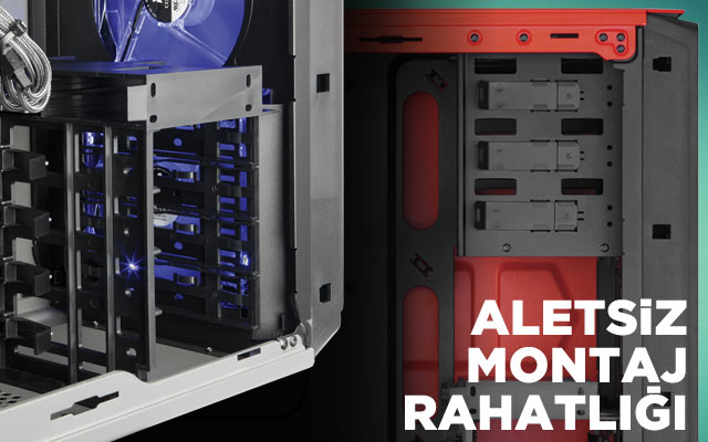 Graphite 230T’ye montaj yaparken tornavida kullanacağınız tek alan, anakartı takarkendir. Donanımlarınızı kolay ve sağlam şekilde monte eder, kaldığınız yerden bilgisayarınızı kullanmaya devam edersiniz. Özel SSD kafesleri ile yüksek sistem performansına kavuşabilirsiniz.