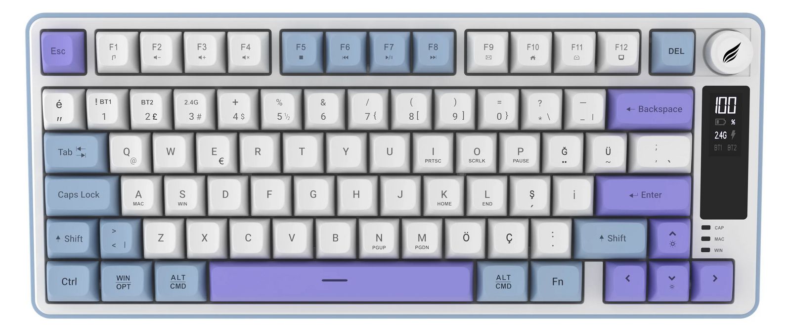 HAWK HK255BP Membrane RGB Kablosuz/Bluetooth, Mavi/Mor %75 Türkçe Klavye