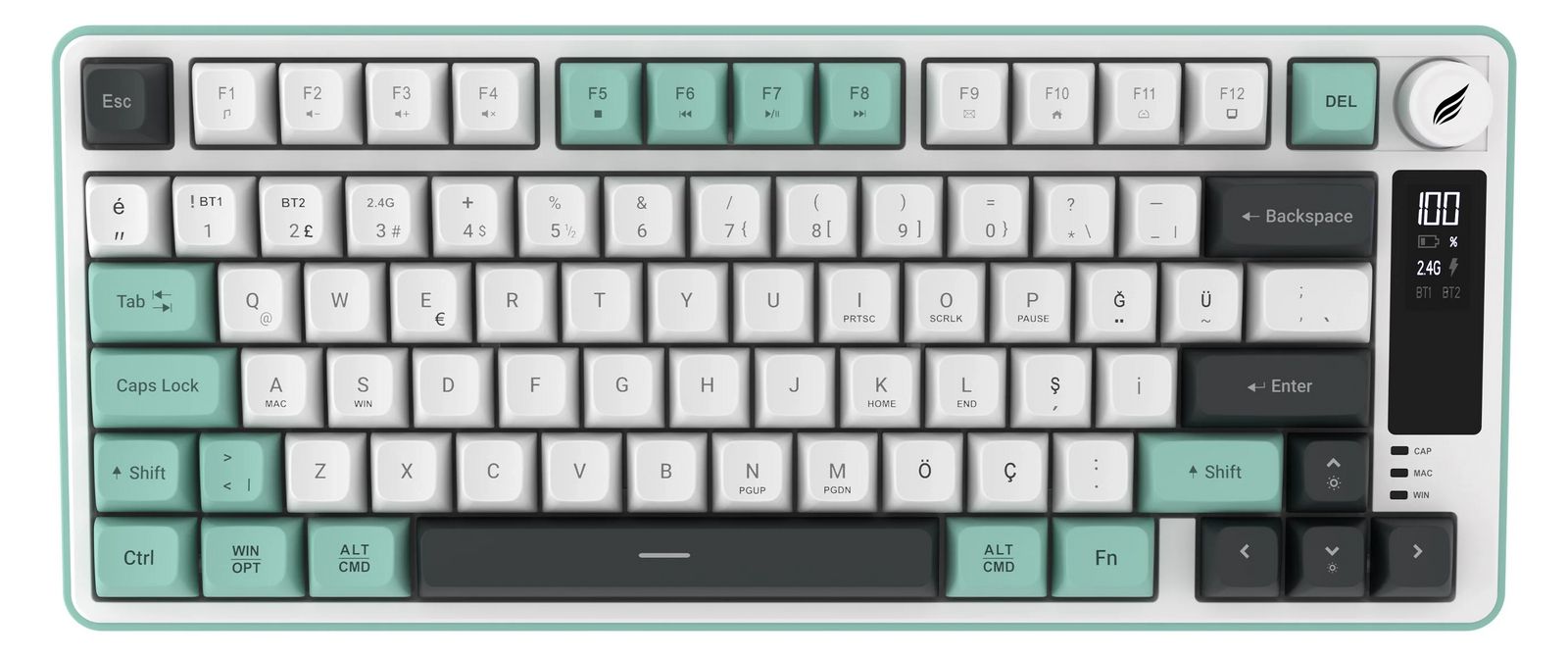 HAWK HK255GP Membrane RGB Kablosuz/Bluetooth,Gri/Yeşil %75 Türkçe Klavye