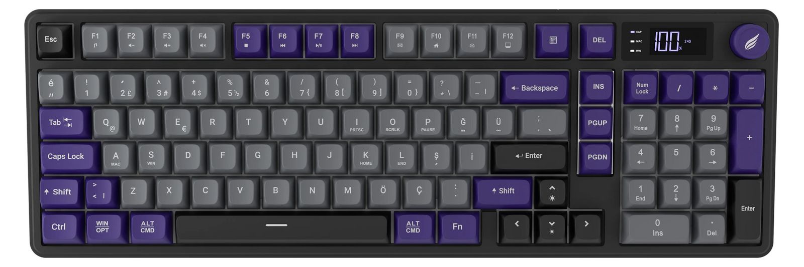 HAWK HK258GP Membrane LCD RGB Kablosuz/Bluetooth Gri/Mor %100 Türkçe Klavye