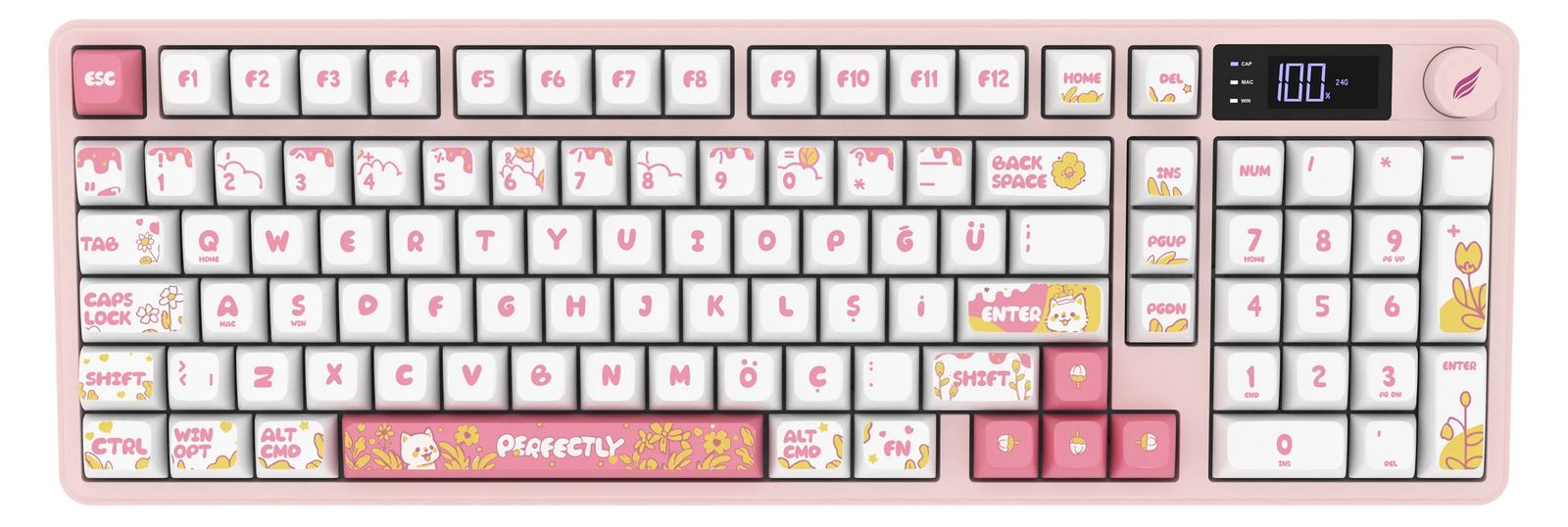 HAWK HK258WP Membrane LCD RGB Kablosuz/Bluetooth Beyaz/Pembe %100 Türkçe Klavye