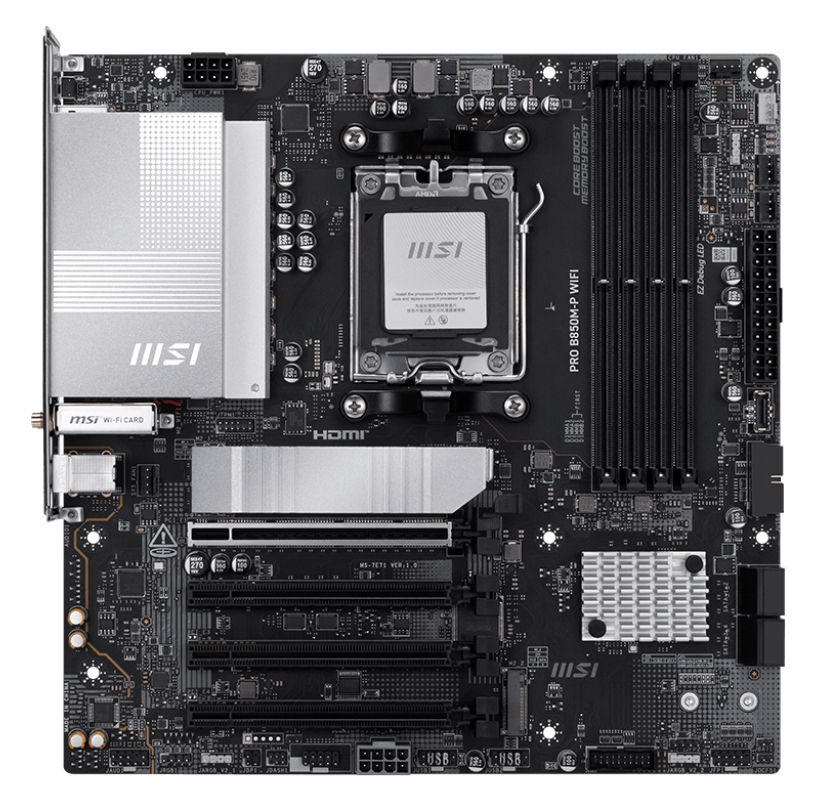 MSI PRO B850M-P WIFI AMD B850, DDR5 8200MHZ(OC), USB-C,Wi-Fi 7, BT5.4, 5G LAN M.2 Anakart