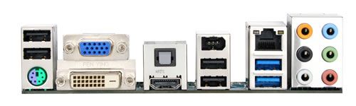 | Arka panel | 1 adet PS/2 klavye veya PS/2 fare ve 1 adet D-SUB(VGA) ve 1 adet DVI ve 1 adet HDMI ve 1 adet Optik ve 4 adet USB ve 2 adet USB3.0 ve 1 adet Firewire(IEEE1394) ve 1 adet RJ-45 ve 6 adet Ses jakı |