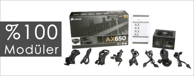 24 pin, 8 pin ve PCI-e bağlantılarının dahi çıkarılabilir olması nedeniyle %100 modüler yapıdaki AX650 bu sayede montaj sırasında kullanıcıya büyük kolaylık sağlar. Kullanmadığınız kabloları özel kılıfında saklayabilir ve kasa içinde karmaşaya son verebilirsiniz. Daha ferah bir iç hacim daha iyi hava akımı demektir. Ayrıca bu kablolar geniş ve uzun fulltower kasalar için ekstra uzun yapıdadır. Böylece güç kaynağını aşağıya monte etseniz dahi üstte kalan güç girişlerine kablo yetmeme sorunu kalmaz.