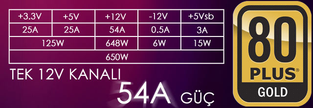 Corsair AX650 tek 12V kanalına sahiptir. Bu sayede üst seviye ekran kartlarının ve çok çekirdekli overclock yapılmış işlemcilerin ihtiyacı olan akım değerini çok rahat şekilde sağlamaktadır. Stabil bir çalışma ortamı sunar. Verebildiği gücün neredeyse tamamına yakınını bu kanal üzerinden aktarabilir.
