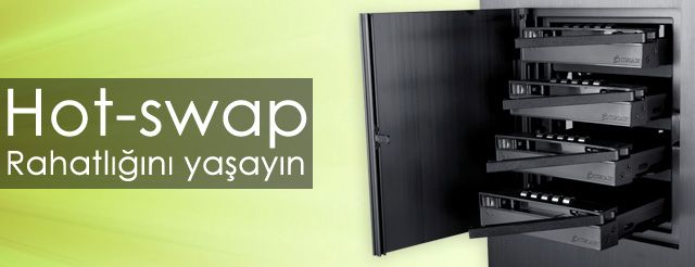 Sabit disk montajını olabilecek en kolay şekle indirgeyen sata 3 destekli hot-swap yapı ile zahmetsiz ve hızlı takma-çıkarma işlemi sağlanır. Bir kaç hareket ile kullanmaya hazırsınız! Sistemi kapatmadan ve kablolarla uğraşmadan sağlam şekilde işinizi halledip kaldığınız yerden bilgisayar kullanımına dönebilirsiniz.
