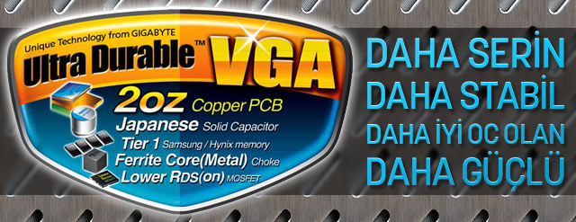 Ultra Durable VGA elektron geçişlerinde daha yüksek bant genişliği sunar, devre direncini azaltır. Azalan direnç, daha stabil bir akım ile daha verimli güç kullanımı sağlar. Güç iletim kayıplarında %10-30 azalma olur.