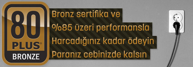 En önemli güç kaynağı değerlendirme enstitüsü 80Plus testlerinde %85 ve üzeri verimlik göstererek Bronz sertifikaya hak kazanan G600, bu sayede şebekeden gereksiz güç çekmez. Elektrik ziyanı olmadığı için faturalarınız azalır. Daha az güç kaybı daha az ısınmasını ve sessiz çalışmasını sağlar.