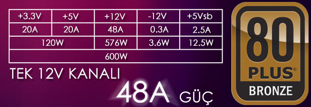 Bir bilgisayarda en çok güç aktarımı yapılan kanal 12v kanalıdır. Bu nedenle PSU’nuzun bu kanaldan verebileceği amper miktarı çok önemlidir. Çok çekirdekli ve hızaşırtılmış bir işlemci, yeni nesil güçlü bir grafik kartı ve diğer tüm donanımların %90’ı için hayati önem teşkil eder. En iyiyi arayanlar, en iyi 12v kapasitesine sahip olan güç kaynağı almalıdır. G600, bu kriterleri tam anlamıyla sağlamaktadır.