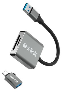 S-LINK SL-CR21 Type-C, USB 3,0, SD/Micro SD, 110M/S Hızlı 2 in1 Metal Kart okuyucu
